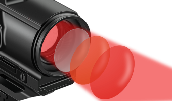 This red dot sight is manufactured using optical-quality glass lenses with multilayer coatings applied to facilitate maximum light transmission and wear resistance while reducing glare and facilitating reduced power requirements.
