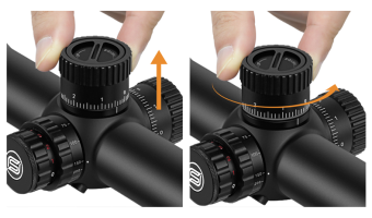 ·To access the Adiustment Turret simply twist the protective Turret Caps off Counter-Clockwise(→).
