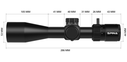 The first focal plane (FFP) model. Compared to the traditional 4-16x44 FFP, it has a more compact design. The total length is only 286mm.